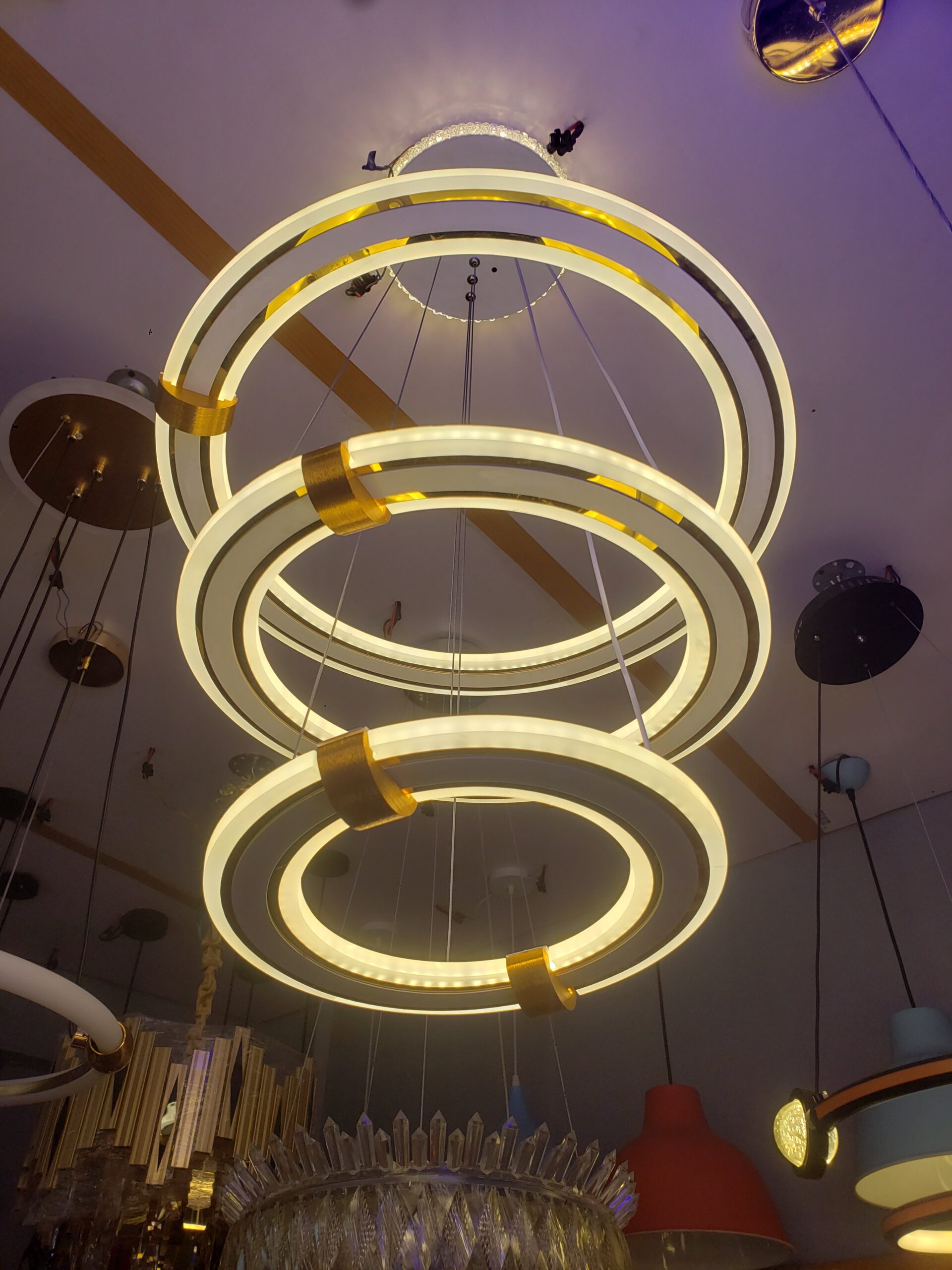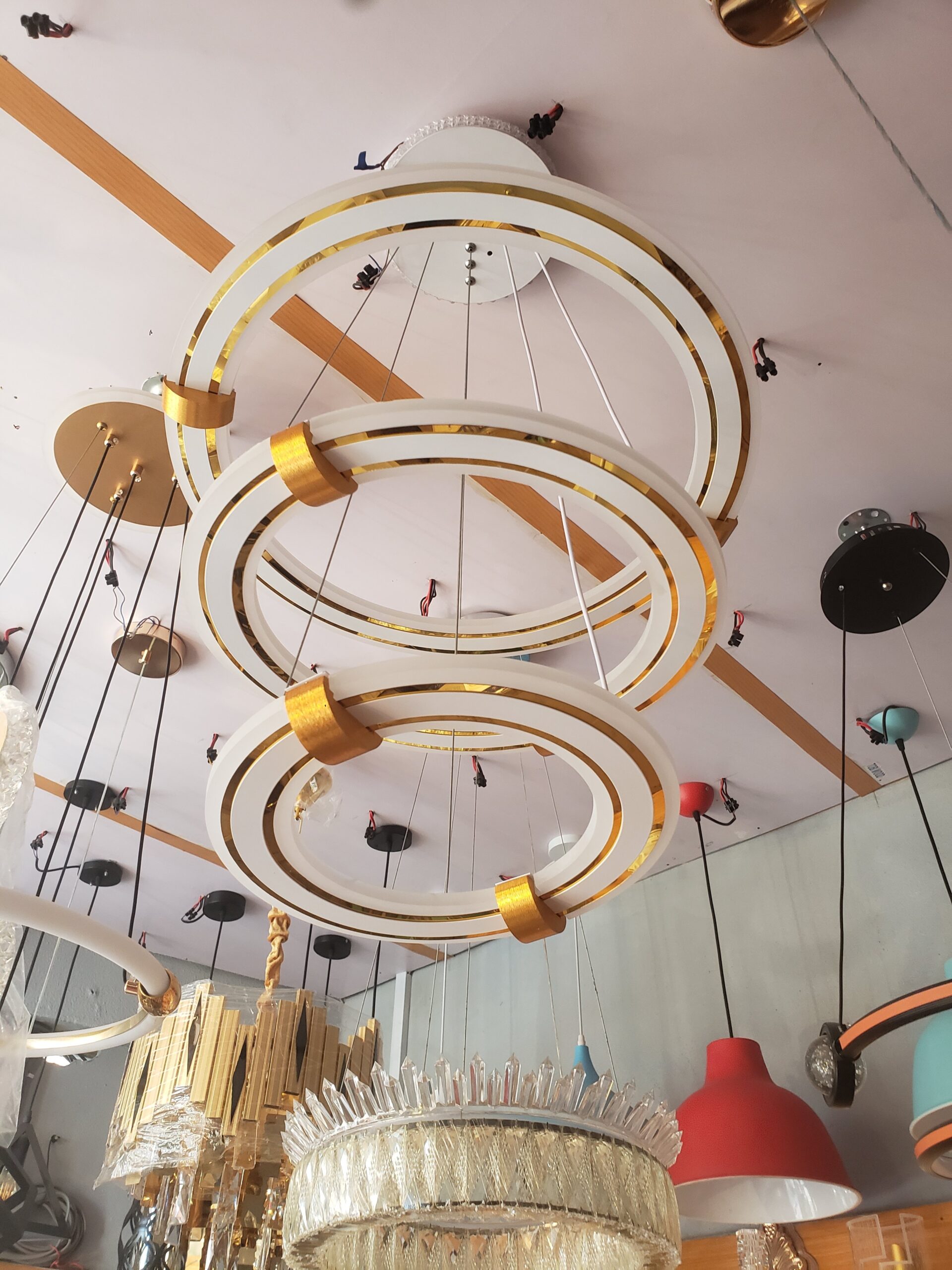 Introducing our stunning Chandelier Ring Drop Light! This elegant fixture features a three-step ring design that adds a touch of sophistication to any room. With its sleek and modern look, this drop light is sure to elevate the ambiance of your space. Illuminate your home in style with our Chandelier Ring Drop Light.